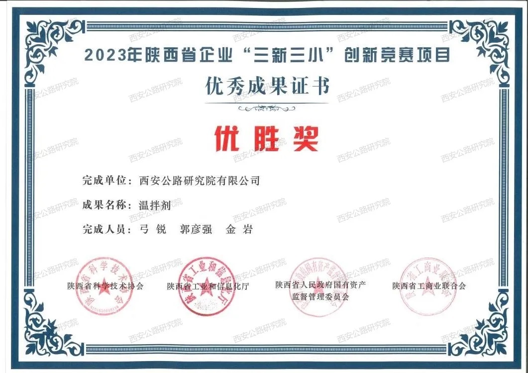 在瀝青溫拌技術(shù)和產(chǎn)品推廣應(yīng)用過(guò)程中編制發(fā)布了陜西省地方標(biāo)準(zhǔn)《溫拌瀝青路面施工技術(shù)規(guī)范》(DB61/T 1007-2016)指導(dǎo)工程應(yīng)用。