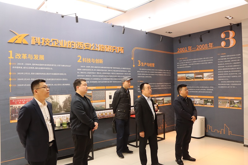 會(huì)前,田洪松一行參觀了西安公路研究院有限公司企業(yè)文化展廳。公路研究院綜合辦公室、經(jīng)營(yíng)開(kāi)發(fā)中心、科技創(chuàng)新與產(chǎn)業(yè)化中心、陜西交通科技有限公司、陜西西公院工程試驗(yàn)檢測(cè)有限公司、西安華澤道路材料有限公司,貴陽(yáng)電氣控制設(shè)備有限公司等相關(guān)負(fù)責(zé)人參加座談。