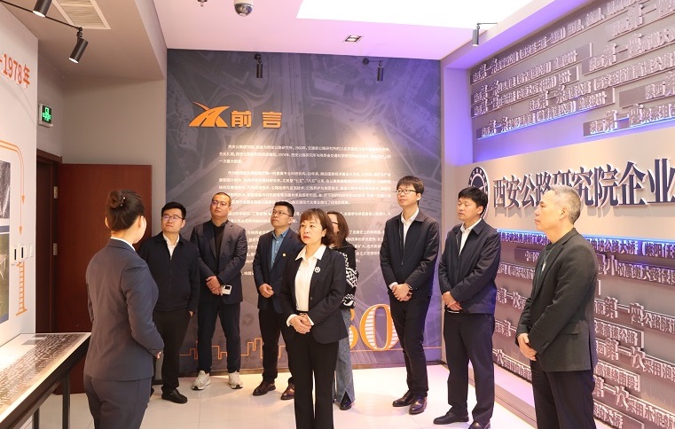 會前,謝海文一行參觀了西安公路研究院有限公司企業(yè)文化展廳。公路研究院綜合辦公室、經(jīng)營開發(fā)中心、工程勘察設(shè)計研究院、結(jié)構(gòu)工程設(shè)計研究院、養(yǎng)護技術(shù)研究院等相關(guān)負責人參加座談。