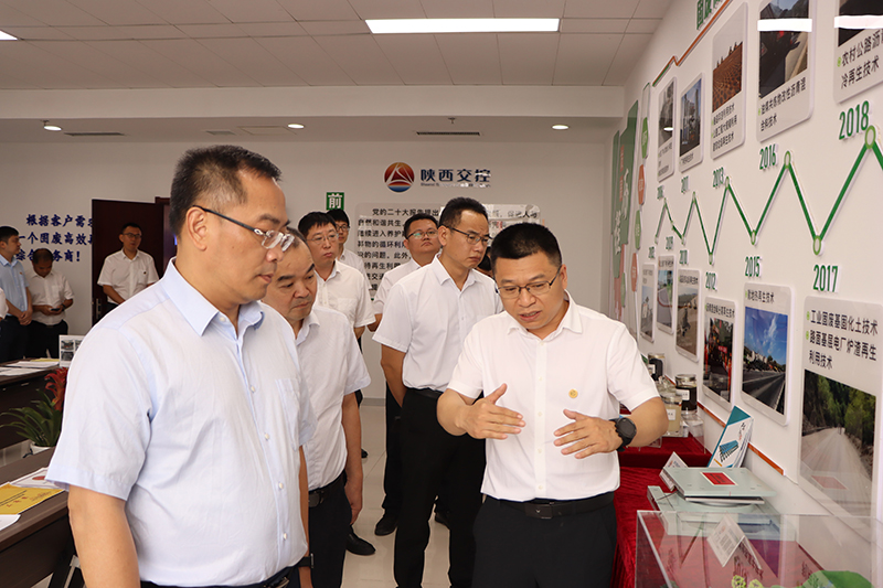 隨后,黃學(xué)軍一行參觀了陜西交控西安公路研究院院士工作站,認真聽取了關(guān)于院士工作站和公司科技創(chuàng)新與產(chǎn)業(yè)化中心的情況介紹,并在實現(xiàn)交通領(lǐng)域低碳化、綠色化和循環(huán)化發(fā)展方面進行了深入交流。
