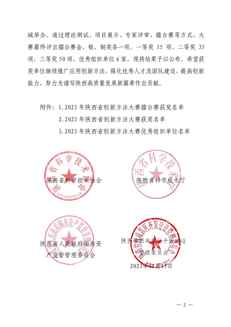 喜報(bào)!西安公路研究院有限公司獲陜西省創(chuàng)新方法大賽二等獎(jiǎng)