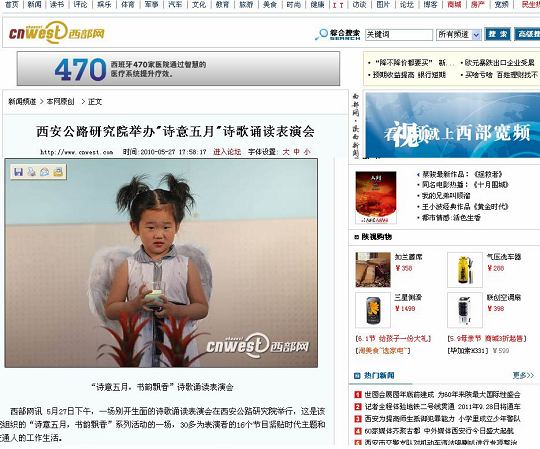 活動(dòng)引起了社會(huì)各媒體的廣泛關(guān)注,文化藝術(shù)報(bào)、西部網(wǎng)、和諧陜西新聞網(wǎng)、喜悅網(wǎng)、三秦都市報(bào)等網(wǎng)站及報(bào)刊雜志紛紛對(duì)活動(dòng)進(jìn)行了及時(shí)的報(bào)道。